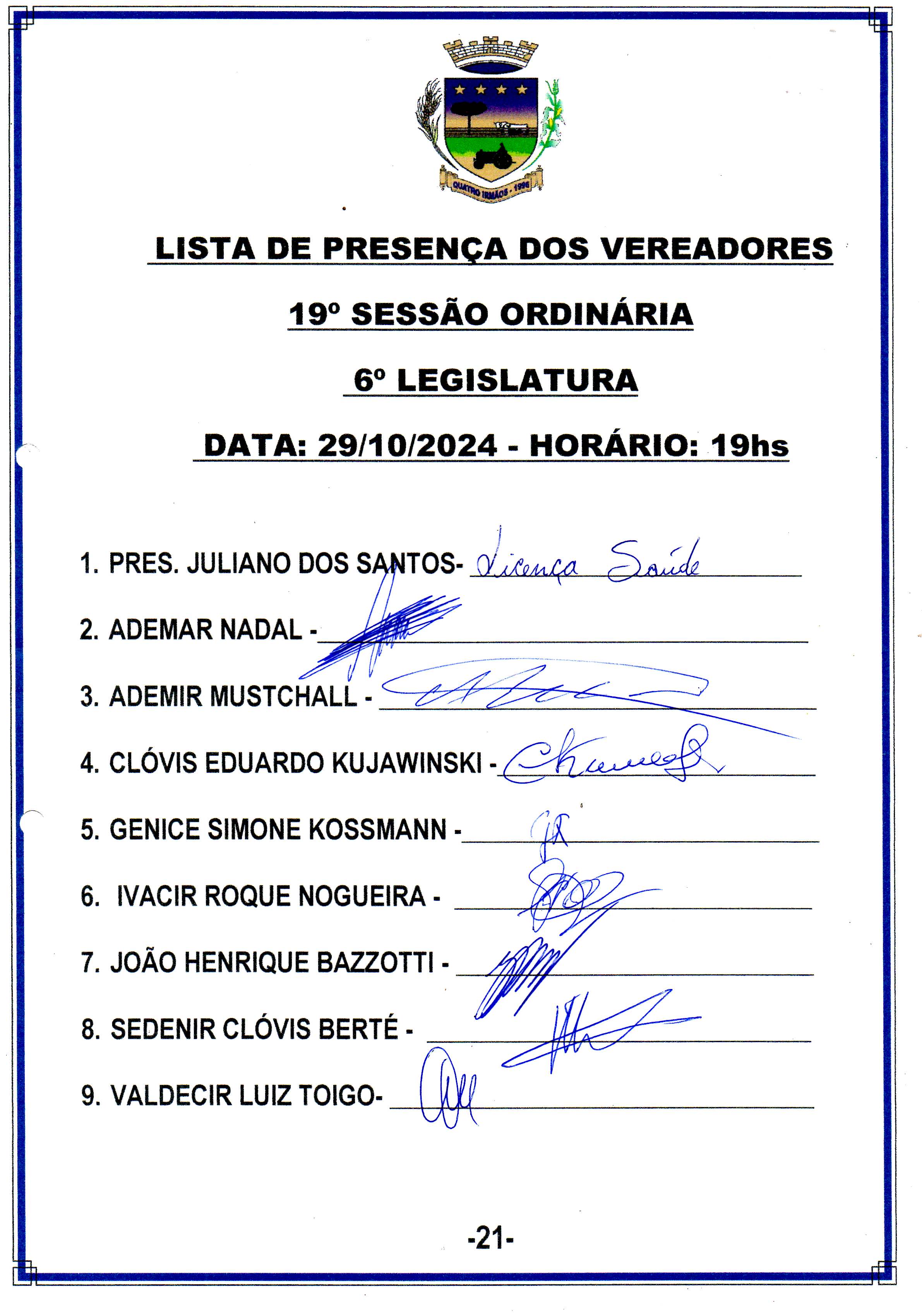 19ª Sessão Ord. 29.10